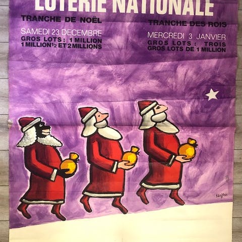 Super flot original plakat til den nationale lotteri illustreret af L. Carlo