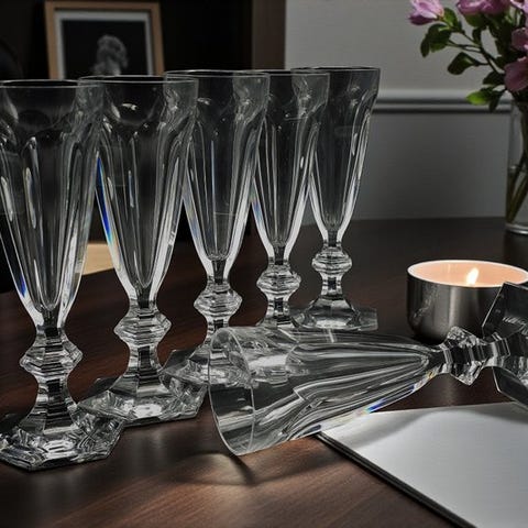 Baccarat - Modèle Fontenay, circa 1950, med dekoration af roser og stiliserede blade, der løber gennem hele glasset (syregravering).