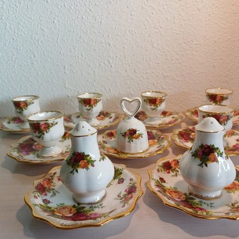 Royal Albert - Wienerbrød/kagesæt (12) - Blomst af måneden-serien - Porcelæn ...