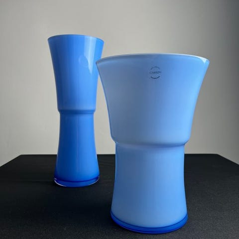 Vasen er signeret, med indgravering direkte på glasset, af producenten i hånden med diamantspids, hvilket er et tegn på garanti og produktets ægthed.