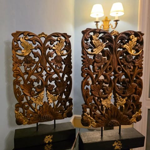 Denne franske dekorative kunst i egetræ er karakteriseret ved sit omhyggelige håndværk og dens dekorative værdi, der tilfører moderne indretninger et strejf af autenticitet.