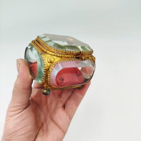Smykkeskrin - Glas, Messing - Guldboks med lommeur