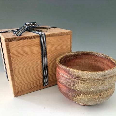 Karaki Naoyuki — Maki-e Waterwheel Lidded Tea Caddy (Mizuguruma Design), keramisk genstand fra Japan, 16 cm høj, 17 cm bred og 17 cm dyb, i god stand med små alderstegn, ledsaget af kunstnerens originale underskrevne etiket og trææske. Klik på den blå "gå til varen" knap, for at købe eller byde på denne vare. Den samlede pris vil blive vist inden du afgiver dit bud.