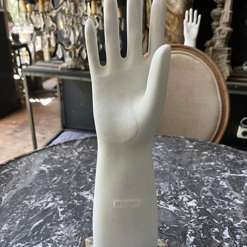 Industriel vintage dekorationsform til handsker lavet af porcelænsbiscuit.