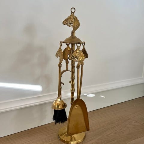 Messingbrændestativ fra Nederlandene, 1950-1960, god stand med små tegn på ældning og mærker, højde 54 cm, basediameter 13 cm, dybde 13 cm, bredde 13 cm, vægt 2 kg, børste også i god stand. Klik på den blå "gå til varen" knap, for at købe eller byde på denne vare. Den samlede pris vil blive vist inden du afgiver dit bud.