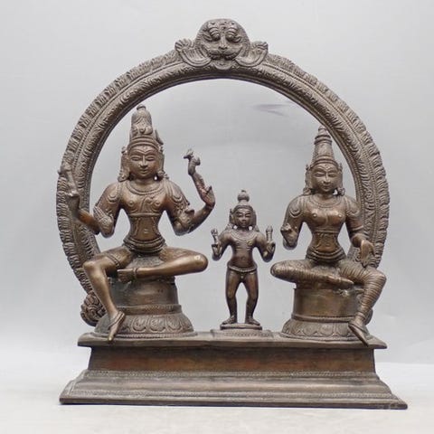 Smukt og tungt fad, der forestiller Shiva siddende på en tigerpels. - Kobber ...