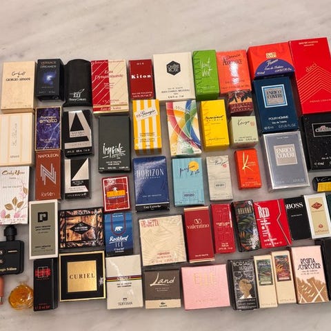Historien om parfumen til entusiaster og samlere går også via dette. Nogle af mærkerne, der har skrevet historie, ikke kun for duften, men også for emballagens originalitet. Bokse og flasker i fremragende stand. 4 uden æske.