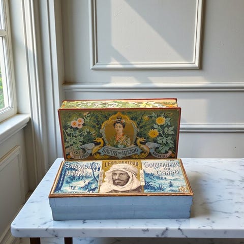 Lotto reklameæsker fra Italien fra 1950'erne 1) Chokolade- og karamellåge fra Caffarel Torino 1957, mål 25x35x17 (sjælden udgave også lavet til Montecarlo forhandler). Et af de tidligste eksempler på butikker åbnet af virksomhederne selv. 2) Kageæske fra Plasmon fra 1958, mål 33x20x7. 3) Konfekt- og karamellåge fra Stobbia Torino fra 1954, mål 23x23x19, virksomhed kendt for fremragende slikproduktion, smuk æske med reliefskrevet Stobbia. 4) Karamellåge fra Fassi Torino fra 1950'erne, mål 13x13x20, i aluminium, meget sjælden. 5) Kageæske fra Barbero Asti fra 1955, mål 33x16x15, et eksempel på en generisk æske brugt af små virksomheder. Alle æsker er i generelt god stand med aldersmærker, der