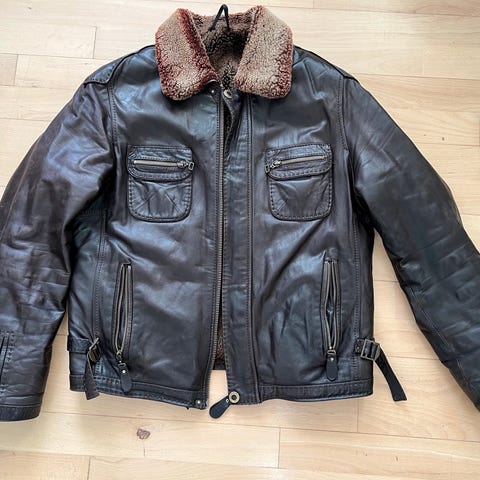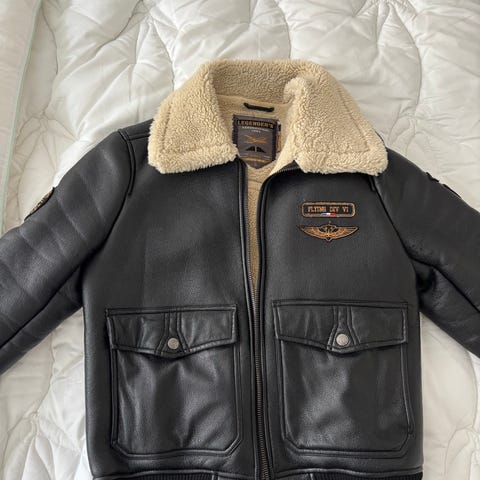 Original flyverbomberjakke fra 1960’erne, lavet af ægte læder.