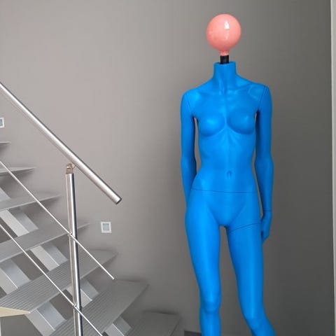 Vintage artikuleret butiksvaremodel i træ. Modellens kropsdele kan placeres i forskellige positioner ved hjælp af drejeled med bolte og vingemøtrikker. Meget charmerende mid-century genstand, i god vintage, funktionsdygtig stand med noget fysisk slid fra brug og opbevaring. Modellens højde er cirka 160 cm.