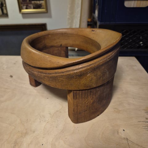 Vintage HOEDENMAKERIJ MAL, en todeltastsform for at forme silkeløg til at dekorere hatte, fremstillet i Nederlandene (Groningen) omkring 1950–1960, af træ, kobber og jern med et tungt jernhoved monteret på et trækraftigt træhåndtag og en messing base, mål 28 cm bred, 4 cm dyb, 5 cm høj, vægt 2,5 kg, i god stand med små aldersmærker. Klik på den blå "gå til varen" knap, for at købe eller byde på denne vare. Den samlede pris vil blive vist inden du afgiver dit bud.