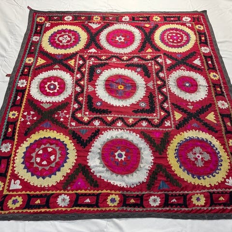 Uzbek Suzani vægtæppe broderi boho borddække, vægophæng, Kelim Suzani. BadCover.
