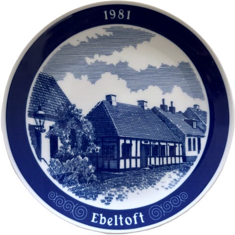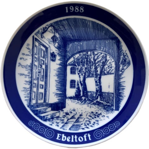 Super flot blå platte fra den serie af platter som Millhouse i 1970'er og 80'er udgav med motiver fra Ebeltoft.