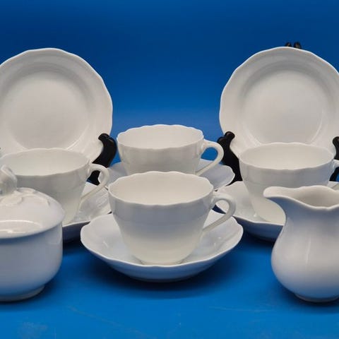Servicen omfatter en tekande, sukkerskål, mælkekande og 11 kopper og underkopper.