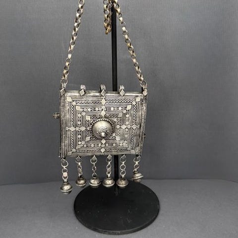 Dette produkt, vi tilbyder, er helt håndlavet af mesterhåndværkere, et unikt produkt for perioden. Det praler af udsøgt håndværk og detaljer. Udover en patina på grund af alder har det ingen fejl eller mangler. Dette amulet fra perioden er et islamisk produkt, der bruges til beskyttelse mod det onde, beskyttelse mod skader i kamp, beskyttelse mod ulykker og beskyttelse mod det onde øje.