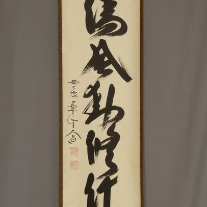 Buddhistisk kakemono-rolle fra Meiwa-æraen omkring 1770, meget sjælden i denne tilstand, 110 × 32 cm, silke og papir, fra privat samling. Klik på den blå "gå til varen" knap, for at købe eller byde på denne vare. Den samlede pris vil blive vist inden du afgiver dit bud.