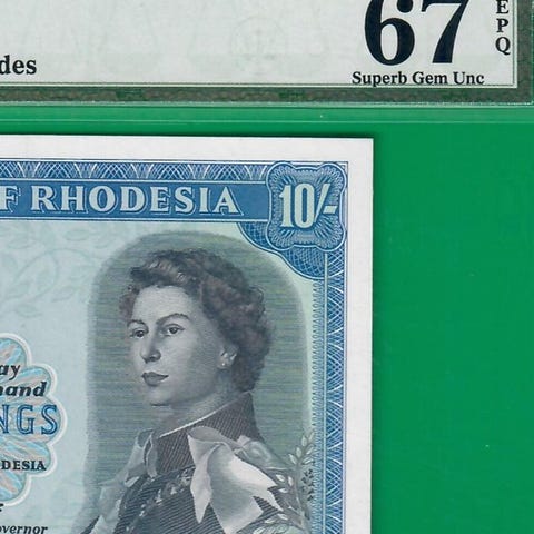 Østafrika 10 shilling (1955) PCGS30 og 100 shilling (1964) PMG50, katalognummer 34 og 48a, certificeret. Klik på den blå "gå til varen" knap, for at købe eller byde på denne vare. Den samlede pris vil blive vist inden du afgiver dit bud.
