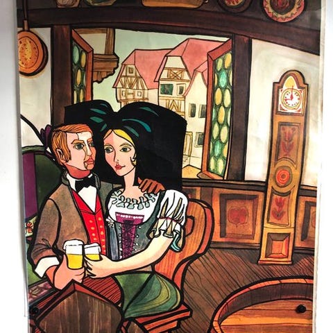 Plakat for øllet Forst, lavet i 1966 med teksten 'auch die jugend bevorzugt forst biere' (Også de unge foretrækker Forst-øl) i midten, karakteriseret ved en række unge figurer fra 60'erne. Plakaten er i god stand med nogle tydelige fejl (let mørkere område som på billedet, nogle folder). Trykket er fra Eurographic forlag i Trento. Den viser 'Imposta di pubblicità'-mærker stemplet 1968. Plakatens dimensioner er 100x140. Forsendelsen vil blive sendt rullet op med Poste Italiane.