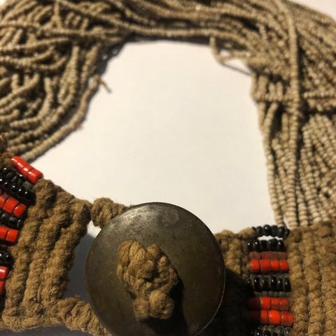 Turkmenistan Tekke sølvkæde med stor vedhæng, filigran-smykkedesign i sølv, rund poleret karneolsten og femten hængende pampeller med koralsten, begyndelsen af det 20. århundrede, samlet vægt 77 g, længde 47 cm. Klik på den blå "gå til varen" knap, for at købe eller byde på denne vare. Den samlede pris vil blive vist inden du afgiver dit bud.