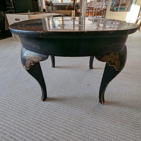Nogle af lakken er skallet af på overfladen af kassen.