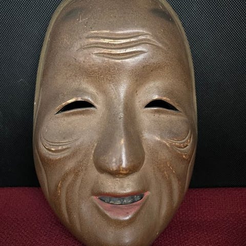 Sjælden japansk traditionel håndskåret træ-Noh-maske Masukami 増髪, mål 21 × 13,5 × 6,5 cm, oprindelse Japan, i god stand med små tegn på alderdom og slitage. Klik på den blå "gå til varen" knap, for at købe eller byde på denne vare. Den samlede pris vil blive vist inden du afgiver dit bud.