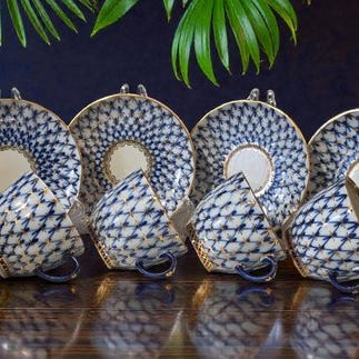 Lomonosov Imperial Porcelain Factory i St. Petersborg. Teenestet vil være en perfekt gave til te-entusiaster og en perfekt tilføjelse til enhver porcelænsdrikkeglasamling.