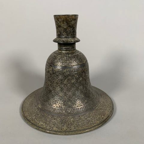 Narguilé-basen 'huqqa' med dekoration i 'Bidri' fra Deccan, det 18. århundrede.