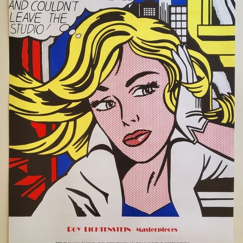Cartel original, reproduktion af værket “Red Barn II”, et værk udført af Roy Lichtenstein i 1969, som er en del af samlingen på Museum Ludwig Köln.