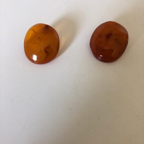 Øreringe, rav, Små bladformet øreringe, aldrig brugt og speciellavet hos guldsmed. (Solgt)