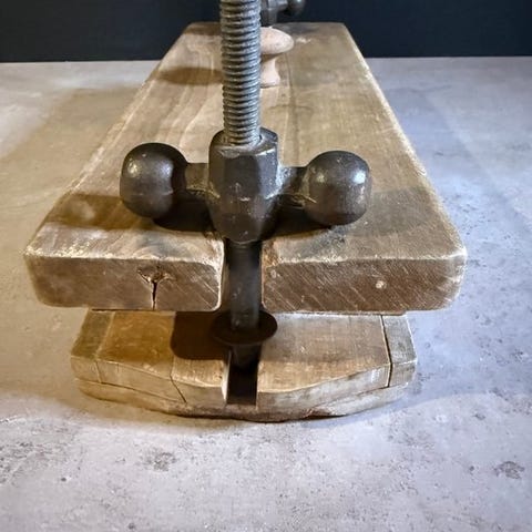 Autentisk antik vinkapsel, traditionelt brugt til at lukke vinflasker med korkpropper. Originalt og fascinerende objekt, tilknyttet den italienske produktion fra 1940'erne/1950'erne, en periode hvor vinudstyr blev lavet til at holde i lang tid med robuste mekanismer og tunge materialer.