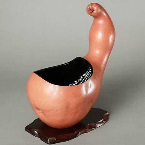 Lerkar med revnet glasur og guldbelagt emalje.