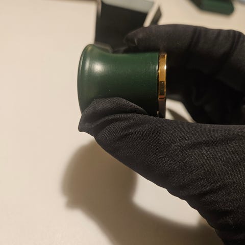 Rolex tilbehør monokel forstørrelsesglas i mint betingelse, testet og i funktion, lavet af ahorntræ, højde 1,33 cm, bredde 2,80 cm, dybde 2,80 cm, vægt 21 g, forstørrelse x10, med original emballage og æske. Klik på den blå "gå til varen" knap, for at købe eller byde på denne vare. Den samlede pris vil blive vist inden du afgiver dit bud.