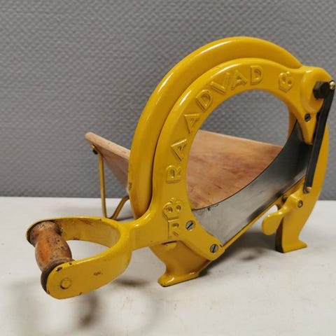 Dette er en håndbetjent brødsnitter fra Raadvad, modelnummer 294.