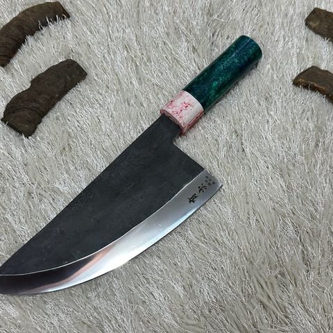 Dette elegante sæt af håndlavede japansk-inspirerede kokkehakkeknive er en perfekt blanding af traditionelt blad-inspiration og moderne håndværksmæssig kunnen. Designet med præcision, balance og ydeevne for øje, er disse knive velegnede til professionelle kokke, madentusiaster og seriøse hjemmekokke, der værdsætter kvalitetsværktøj.