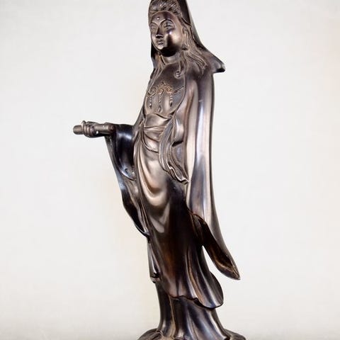 Denne plaque af Amitabha Buddha er lavet af hamret kobber. Amitabha Buddha, kendt som 'Amitābha' (Uendeligt Lys) eller 'Amitāyus'