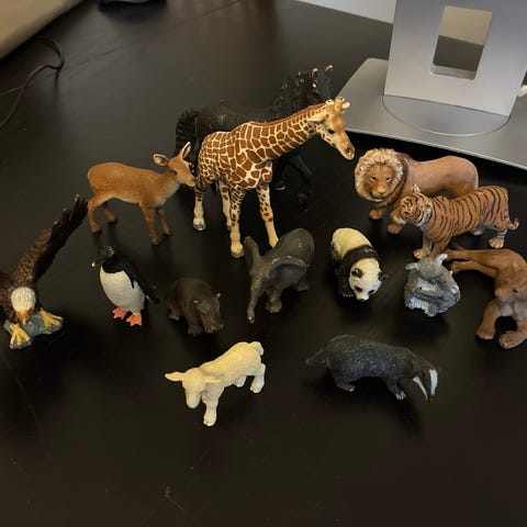Store elefant og krokodiller små brugsspor. De andre fremstår helt nye. Køb samlet for 350 kr eller 25 kr pr stk.