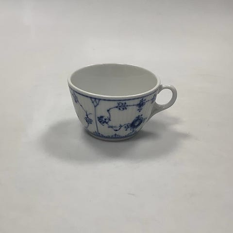 Royal Copenhagen Musselmalet Riflet Hotel Kaffekop med underkop No. 2238. Mål: Kop 6,2 cm x 7,5 cm dia. / 2,44 in. x 2,95 in. Underkop 13,5 cm / 5,31 in.