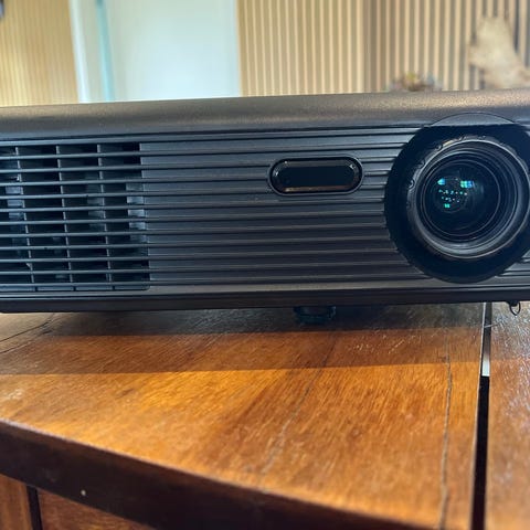 Lysstærk OPTOMA HD141X full hd projektor med 3.000 lumens lysstyrke, som er tilstrækkeligt til projektion i dagslys. Virker fortræffeligt som det ses på billederne. Opløsning er på 1920X1080 og den kan også vise 3D video. Pæren har kun kørt i 30 timer ud af 5000t.