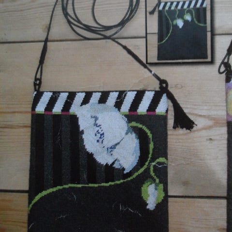 Hjerteformet æske med broderet blomsterdesign og hæfte med broderiopskrifter