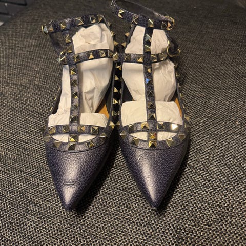 Valentino Ballerinasko str. 38 brun ruskind med nitter