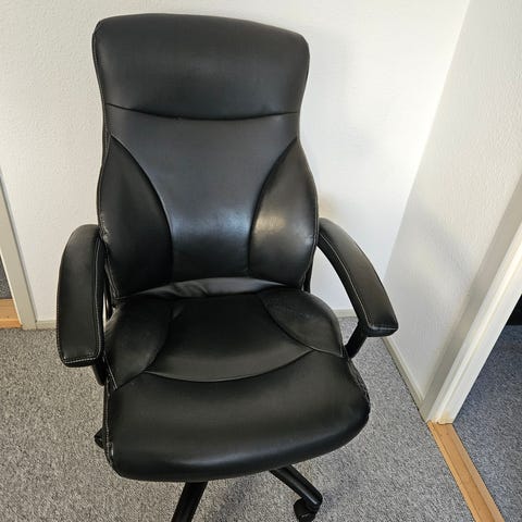 sort kunstlæder, rigtig god at sidde i, næsten som ny, ny pris 1.599