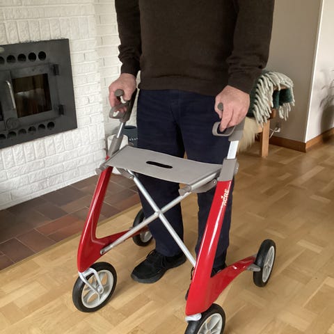 Næsten ny Rollator i rigtig solid og god kvalitet. kun brugt en gang indenfor.Dobbelt sammenklappelig max vægt 136 kg. Letvægts model. årg 2025 ny pris 2500 kr. byd gerne.