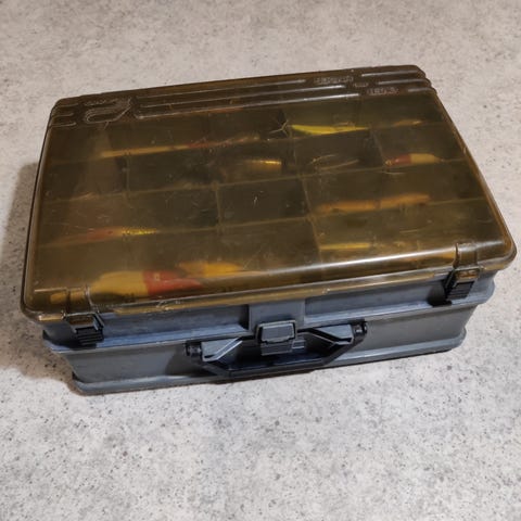 Plano box str 3700. Fyldt med wobler / jerkbait, ubrugt, der er kun kvalitets agn i kassen, bla salmo/ westin/ rapala. Mm.fast pris. 400. Kr.