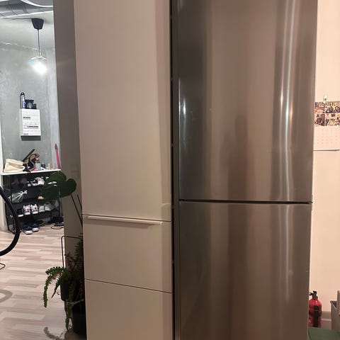 Siemens Køle-fryseskab i stål med modelnummer KG39M390/13. Skabet har en samlet kapacitet på 373 liter, hvoraf køleskabsdelen rummer 282 liter og frysedelen 63 liter. Køle-fryseskabet er udstyret med en digital kontrolpanel og flere hylder og skuffer til opbevaring.