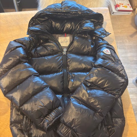 Moncler maya Jakke i sort farve, lavet af nylon materiale. Jakken er designet til unisex og har størrelse L. Den har en polstret og quiltet konstruktion med lynlåslommer og hætte.