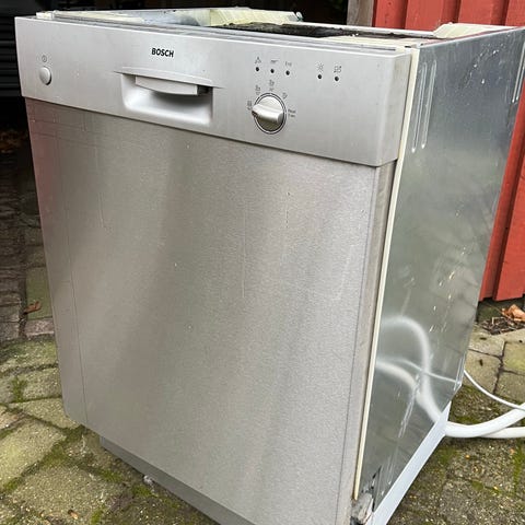 Bosch opvaskemaskine til underbygning med rustfri stål front. Model SHU55M25SK/65. 20 år gammel. Fungerer 100%. Lidt rust på underkurv.