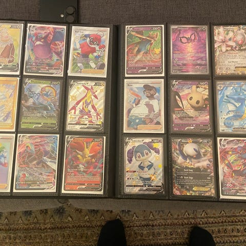 Mange pokemon kort og et battle decj en Colin og kort holder
