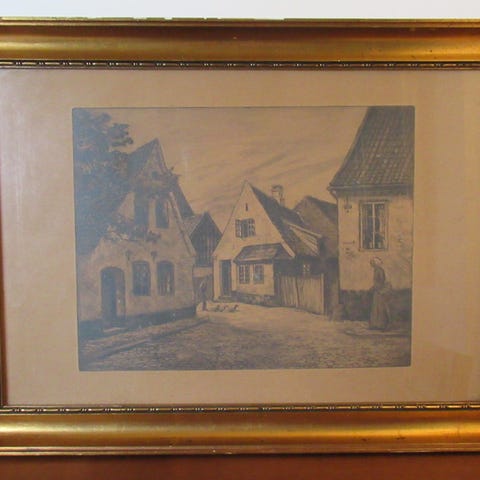 I fin sort ramme med smal guldkant ..