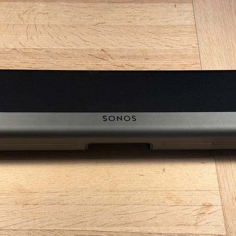 Sonos Playbar lydbar fra 2018. Sort og rektangulært design. Velegnet til brug i stue eller hjemmebiograf til forbedring af lydoplevelsen.