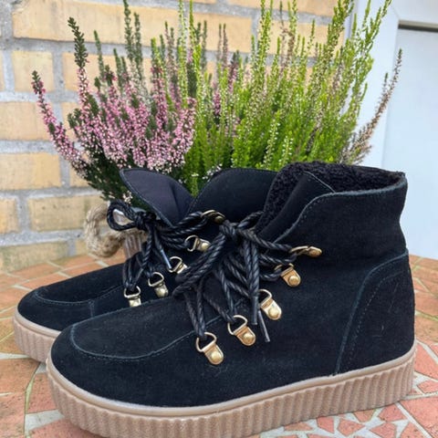 Sofie Schnoor vinterstøvler i størrelse 41. Støvlerne er designet til at holde fødderne varme i kolde vejrforhold og har en robust sål med mønster for bedre greb. Indvendigt foret med blødt materiale for komfort.